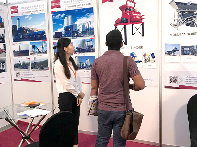 混凝土搅拌站、WBC系列稳定土拌合站等产品吸引了络绎不绝的观展者驻足洽谈。接待人员不失时机地向来观展的客户介绍建新机械的技术优势、产品特点、售后服务及销售代理政策,其热情的讲解受到了广大斯里兰卡客户和当地工程机械人士的关注,部分客户当场展开了详细的商谈。